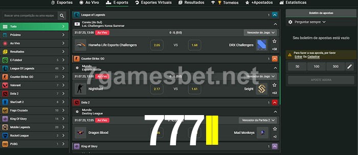 O 777II oferece uma grande seleção de opções de apostas em e-sports com probabilidades competitivas